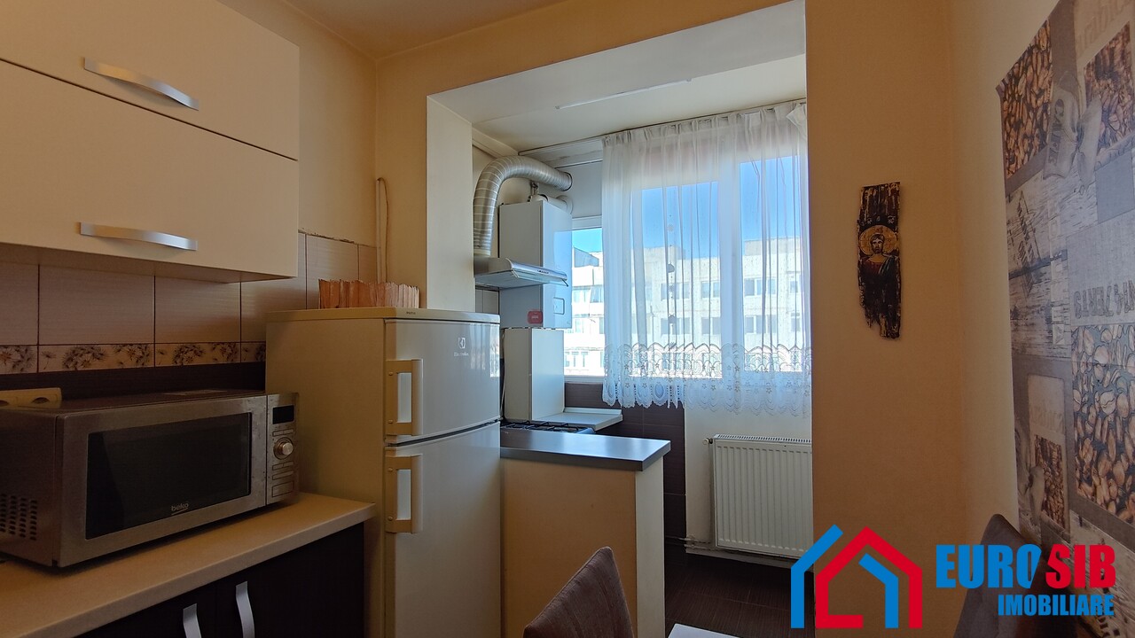 Exclusivitate. Apartament cu 2 camere complet mobilat și utilat de vânzare, în Sibiu, mai exact la intersecția străzilor Siretului cu C. Cisnădiei. Locuința se află la etajul 9 din 10 al blocului, blocul este prevăzut cu lift nou, iar suprafața utilă este de 52 mp cu o compartimentare semidecomandată după cum urmează: