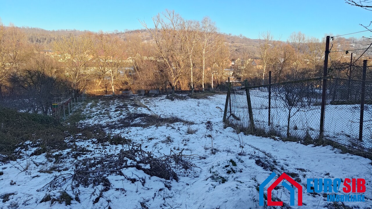 694 mp teren cu o deschidere de 9 m la stradă și cu acces la râul Cibin în spatele grădinii